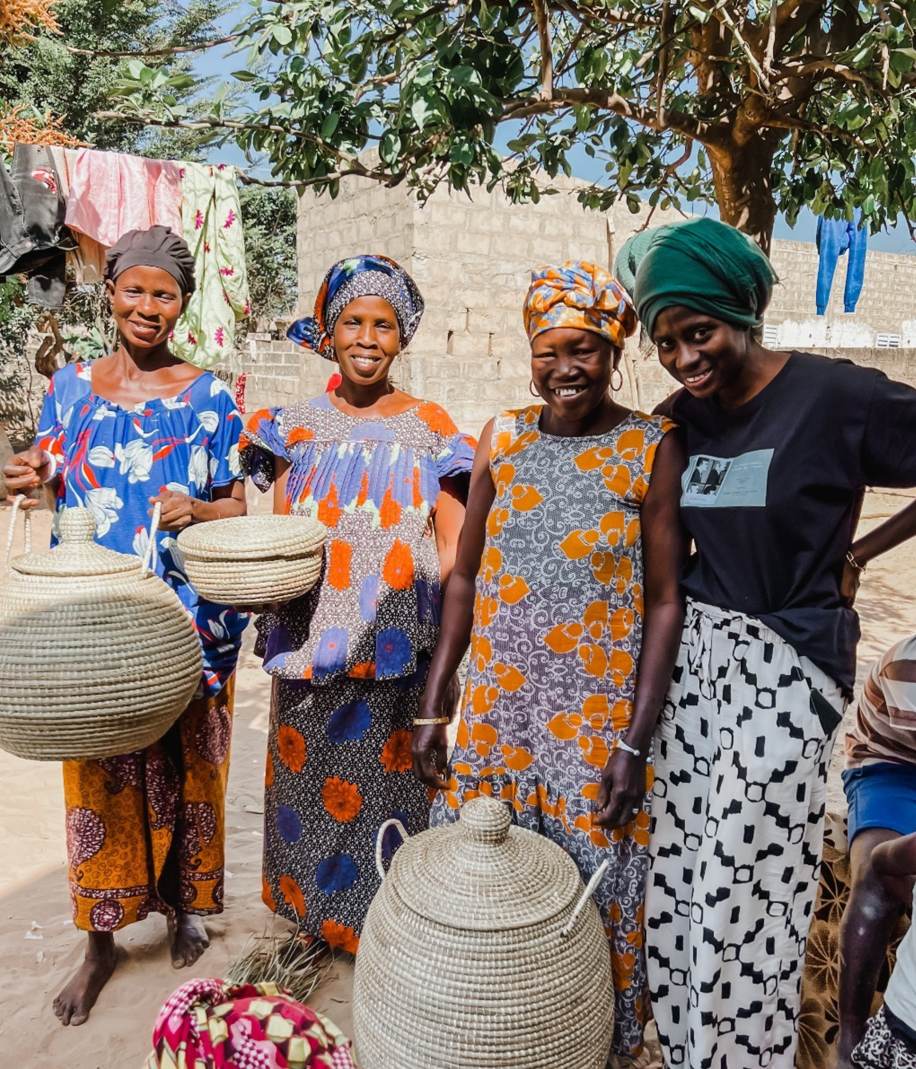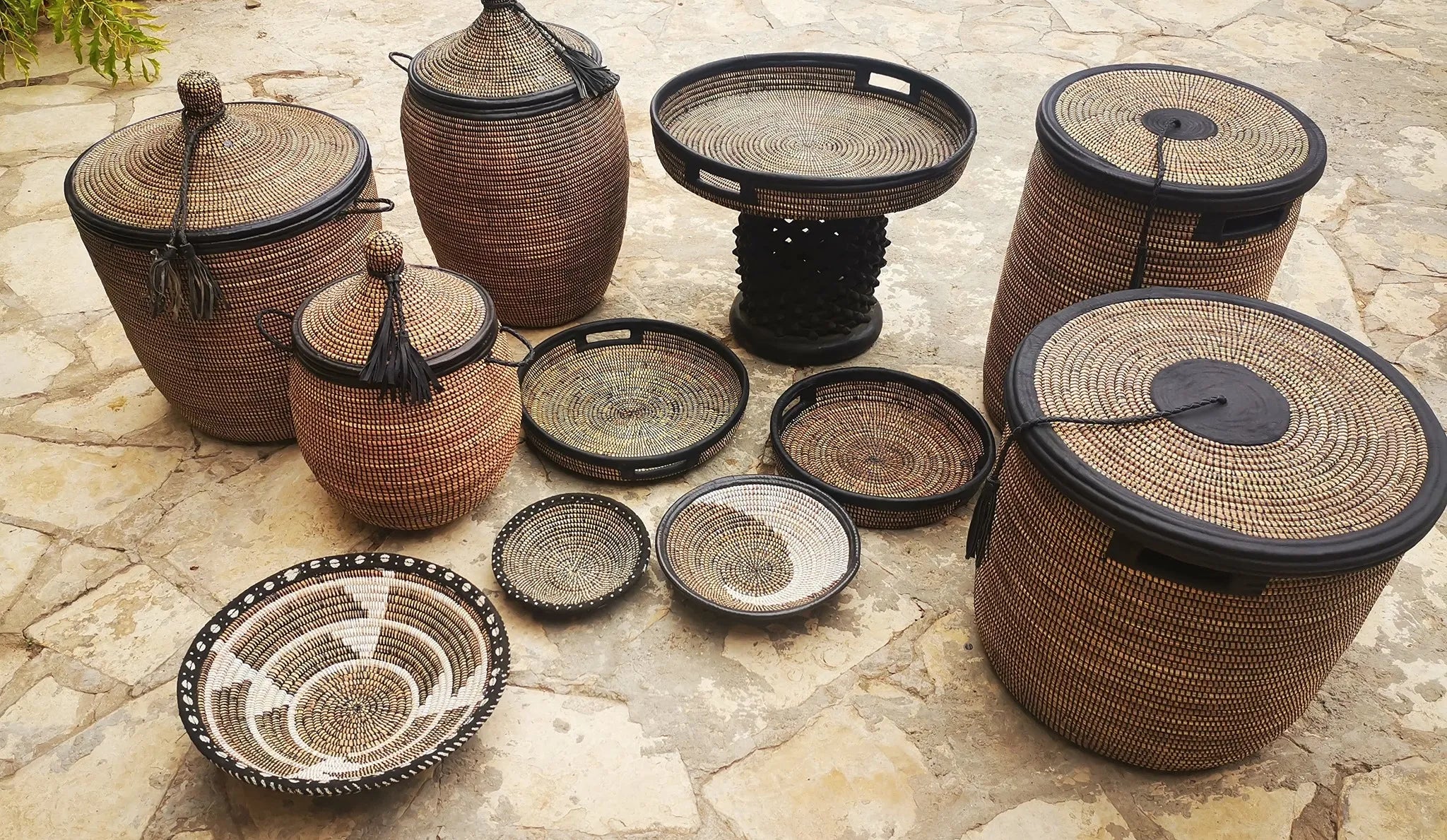 Collaborating with women from surrounding villages in Senegal who create stunning modern bags, baskets, and rugs using traditional materials and techniques. Their beautifully finished Senegalese baskets, often trimmed with leather, reflect a weaving tradition passed down through generations, reimagined with vibrant colors, shapes, and textures.